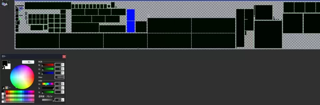 ぱっと見は黒に見えますが、カラーパレットの